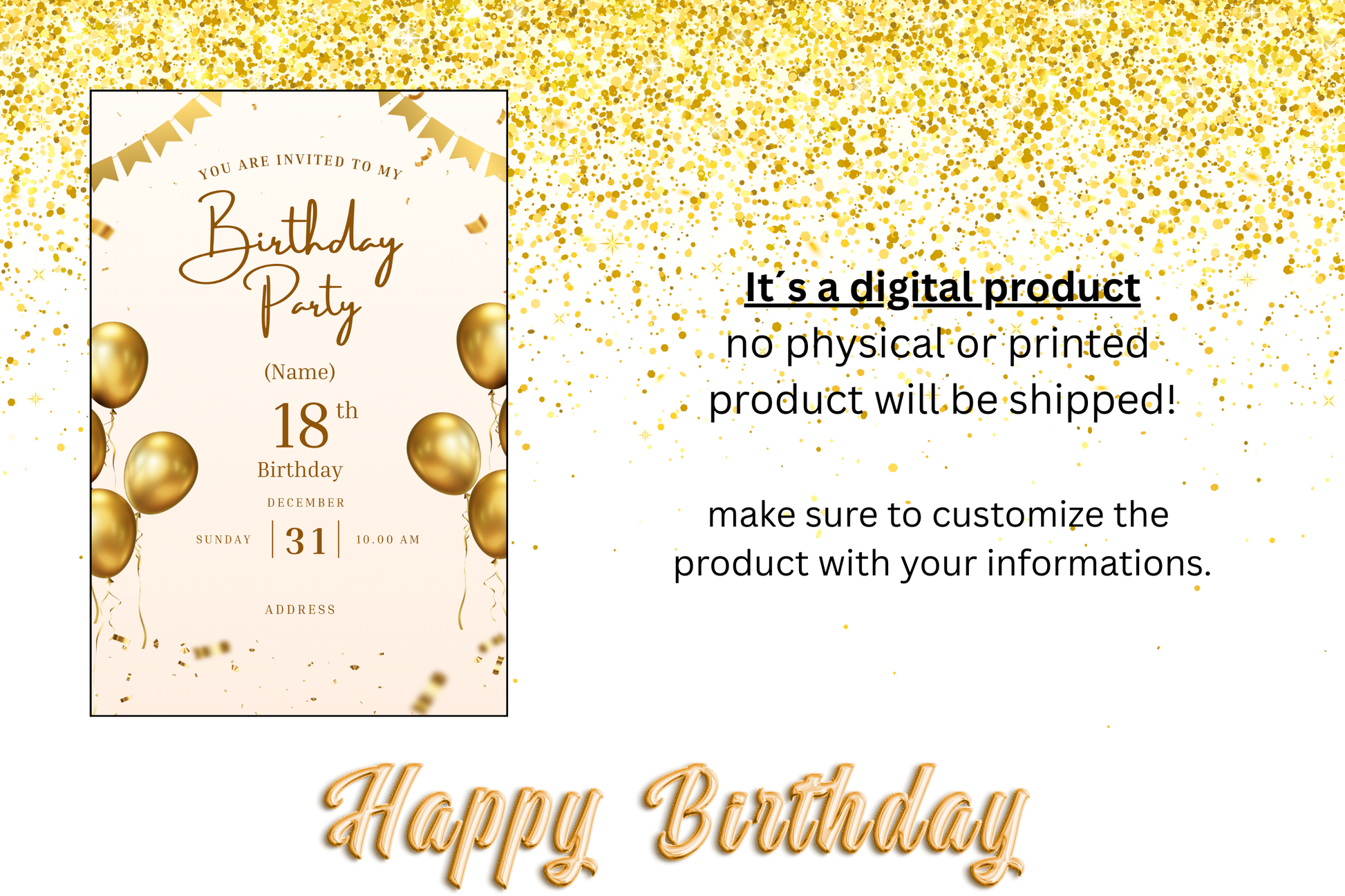 Modern Birthday Card in Gold – Canva